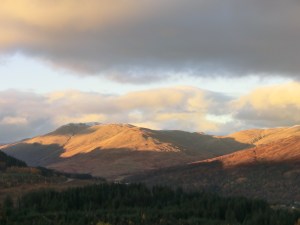 From the top of the Dukes Pass in the heart of the Trossachs I watched the last rays of the drying autumn sun illuminate the hills of the Southern Highlands. Without a doubt there is something unique in the Scottish landscape that touches you deeply and spiritually in a way like nowhere else. Perhaps it is the omnipotent sense of the past in Scotland; the long evolution and mixing of Celtic, Pictish, Viking and Britons (not to mention more recent imigrants) that provides the country with its unique sense of mystery and timelessness. Perhaps it’s also Scotland’s brooding wild landscapes with the primeval skeleton of ancient bedrock exposed to the surface for all to see.
