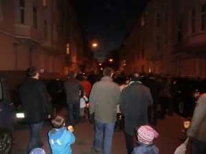 We joined a St Martins parade through the Frankenburger Viertal area of Aachen. It was exciting and atmospheric walking through darkened streets, the multitude of coloured lanterns glowing a veritable spectrum of colours. Lantern designs are incredibly varied with traditional themes depicting the sun, moon and stars and modern influences ranging from Disney cartoon characters through to pop stars and inevitably Hello-Kitty.