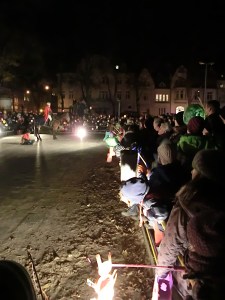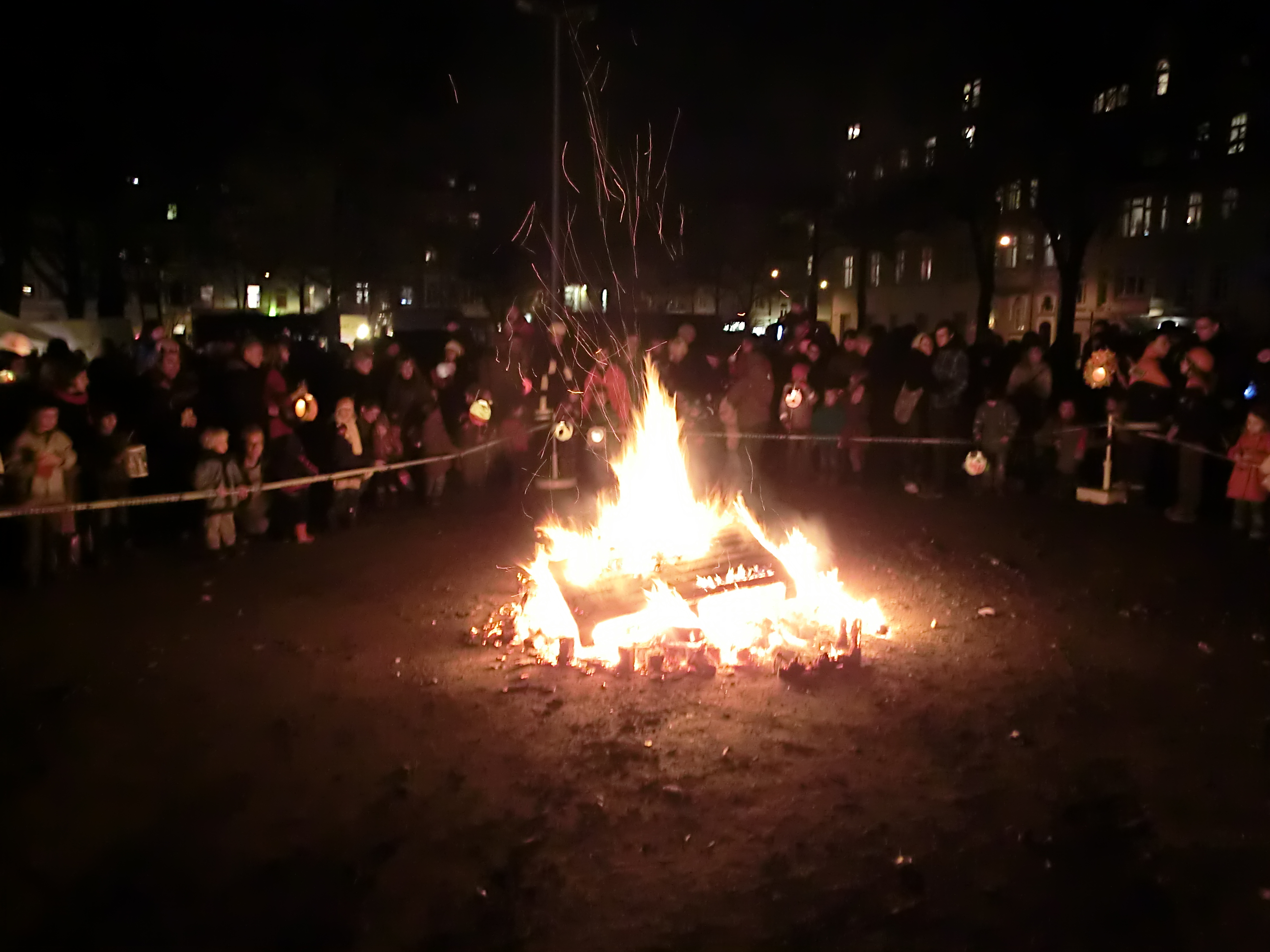 Following the re-enactment of the St Martins legend, a huge bonfire was lit and revellers enjoyed a choice of mulled wine, hot chocolate and treats for children. Most popular was a piece of glazed fruit bread in the shape of a man (somewhat like a gingerbread man) with a pipe known as a “weckman”. At this point all the children started to run around excitedly, colliding into each other in the darkness and getting just a bit too out of hand. This was obviously great fun for kids but somewhat stressful for adults; the greatest problem being relocating them amongst the throngs of people, the bonfire smoke and the dark.