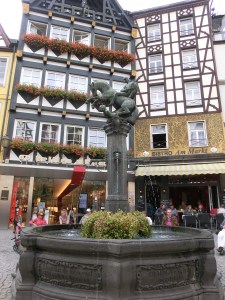 Of the three main centres, Bernkastel Kues is my favourite. The highlight of the town is surely the busy Marktplatz with its amazing collection of half-timbered houses surrounding a perfect, neat, little town square with its central fountain. The pretty little town seems very reminiscent of the British children’s TV series “Trumpton” (for those old enough to remember it !).