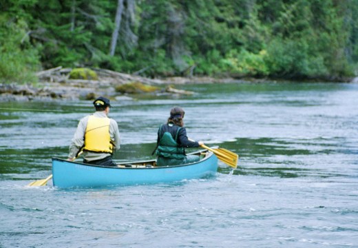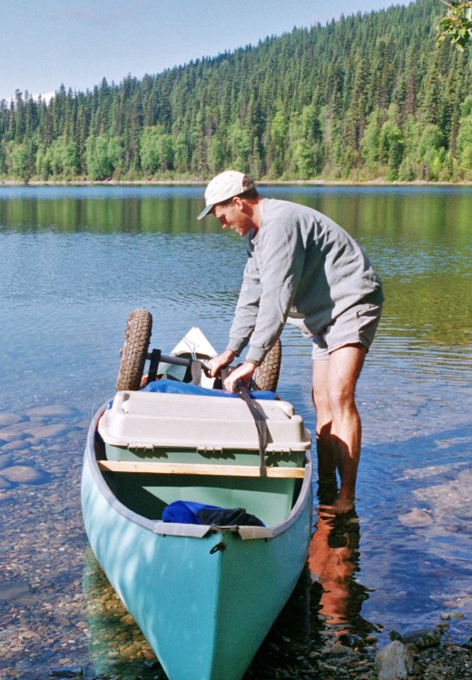 By this time I’d established that my brother’s experience of wilderness canoe travel was even less than my own; it was obvious that a big play wasn’t to be placed upon showing off to other canoeists. Our trusty “prospector” canoe had been picked up at a garage sale for 50 dollars. Makeshift bits of plywood had been thrown in as seats and there wasn’t a drysack to be seen anywhere. “Bin liners are ideal for that sort of thing”, Ken assured me. I conjured up images of capsizing in the fast flowing, icy waters of the Bowron River, miles from help, with broccoli, steaks and sleeping bags all floating off down the river. After a tense standoff we agreed to compromise and headed off to a local store to pick up a couple of drysacks. Now we were up with the professionals and I knew that we could handle anything.