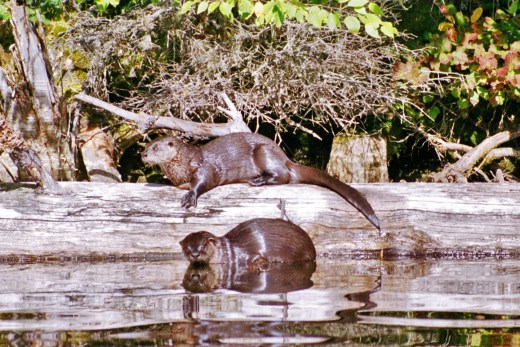 The next day heralded a bright start; an effervescent autumn morning, still, steaming waters reminiscent of some New World Avalon. As we paddled through the misty waters, something stirred, not Excalibur, but a curious river otter eager to investigate our canoe and its human contents. First one then two; the otters hauled out of the water and observed us from a tree branch with detached amusement. We paddled a bit closer and I clicked off several shots with my zoom lens at close quarters. A quick splash and our aquatic friends disappeared into the murky waters.