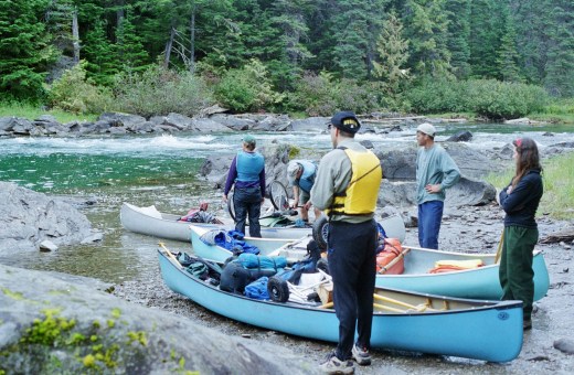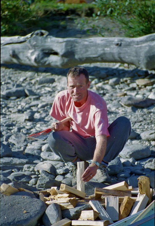 Daylight revealed that our location was not so remote and that in fact, our camping place was surrounded by other campers and trailers. Ken had made all the arrangements. He was on some special dietary fad at the time which, he explained, involved eating lots of “fresh food”. This consisted of an enormous array of vacuum packed steaks, chicken, salmon and pulses, all of which filled a couple of large cooler boxes. Other canoeists eyed us with envy and suspicion from behind their meagre stashes of freeze-dried gunk. I imagined too that the bears might be getting quite excited about our steaks, especially after they’d had to chance of getting “high” in an open canoe for a couple of days.