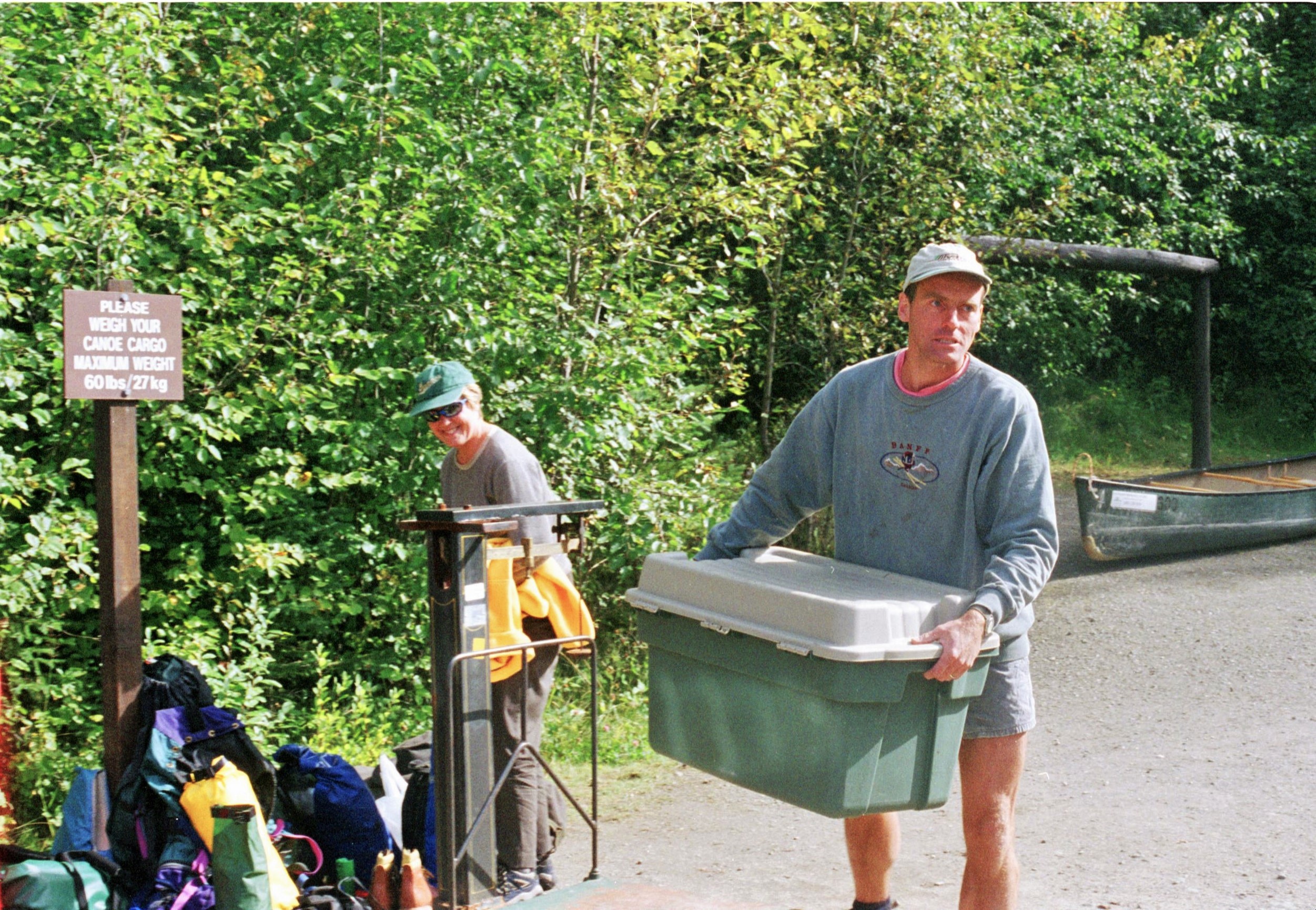 Admissions to the Canoe Circuit are strictly limited by BC Parks Department to reduce pressure and disturbance to wildlife. Would-be canoes are subjected to a degrading weigh-in ritual to check that the weight of gear stashed in the canoes will not cause damage to the portage trails. Strangely enough though we could carry as much as we liked in a backpack and so (for the purposes of the weigh in), out came the broccoli, the steaks and the pulses. Later we heard stories of clandestine park officials hiding on portage trails with mobile scales to check that people weren’t carrying too much. During our visit fortunately, these stories proved unfounded and anyway, the stack of food could only go down with each passing day.