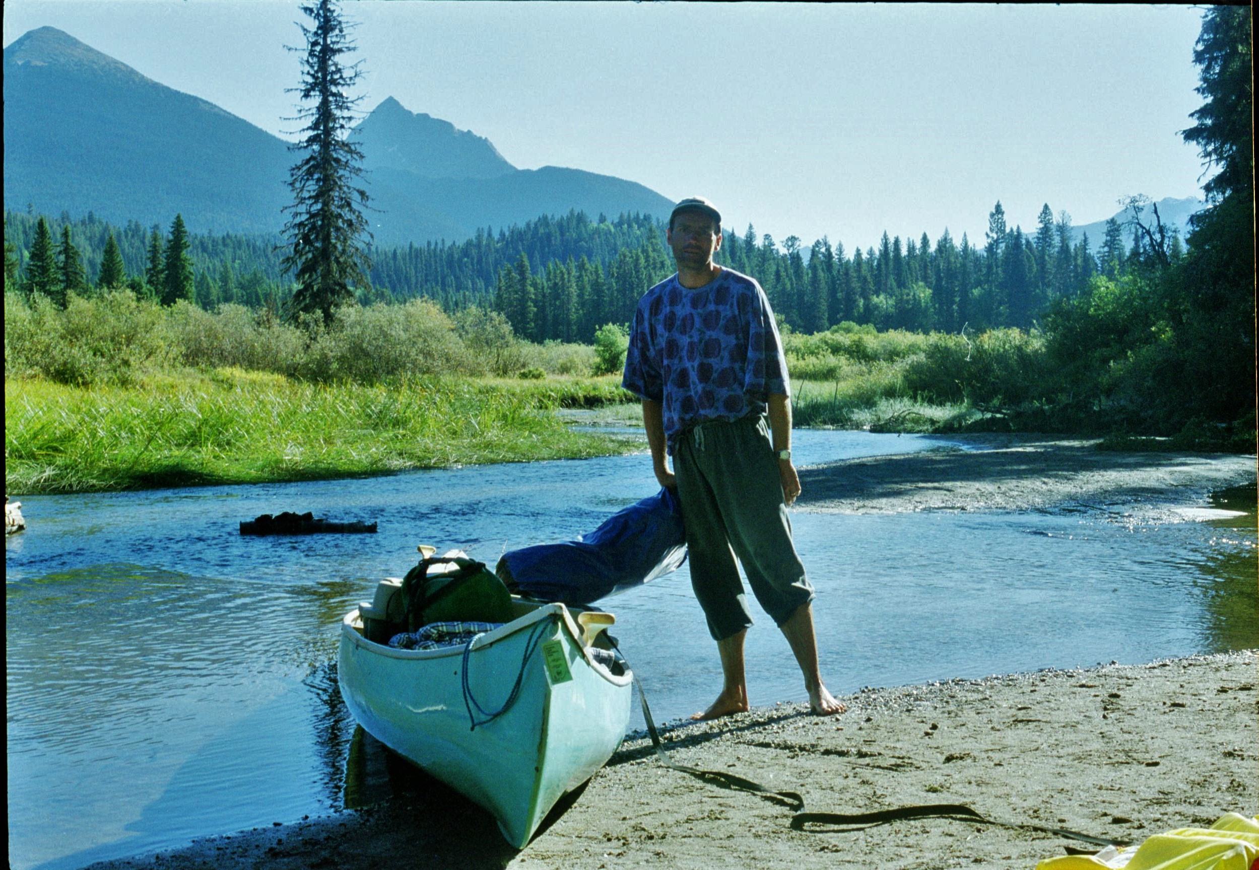 By this time I’d established that my brother’s experience of wilderness canoe travel was even less than my own; it was obvious that a big play wasn’t to be placed upon showing off to other canoeists. Our trusty “prospector” canoe had been picked up at a garage sale for 50 dollars. Makeshift bits of plywood had been thrown in as seats and there wasn’t a drysack to be seen anywhere. “Bin liners are ideal for that sort of thing”, Ken assured me. I conjured up images of capsizing in the fast flowing, icy waters of the Bowron River, miles from help, with broccoli, steaks and sleeping bags all floating off down the river. After a tense standoff we agreed to compromise and headed off to a local store to pick up a couple of drysacks. Now we were up with the professionals and I knew that we could handle anything.