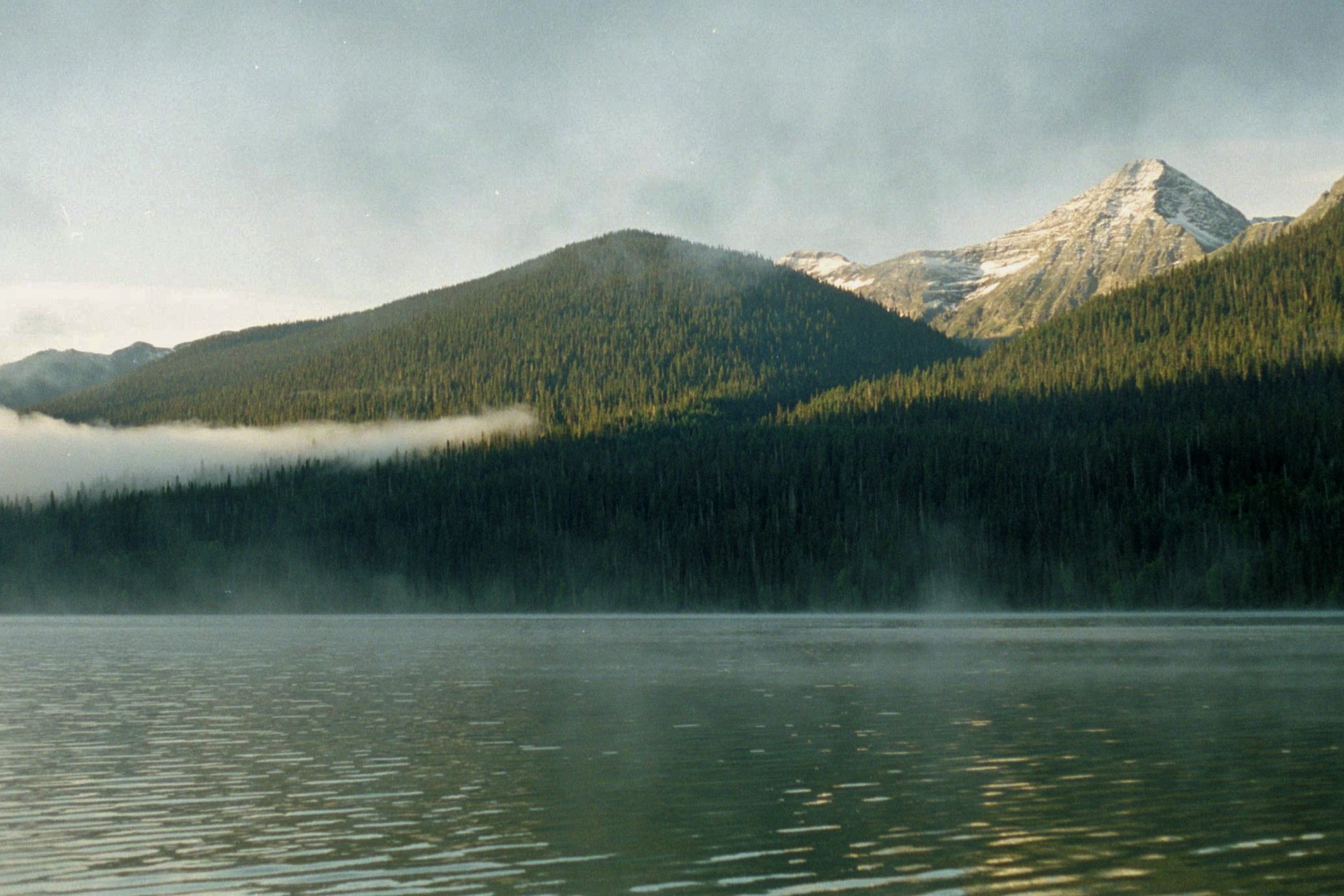 That night Ken heard a rustling and daylight revealed a perfect set of moose prints going right past the tent. Once again morning mist upwelled. Ken awoke early and disappeared on some solo voyage off into the mists, as if on some ethereal Arthurian quest.