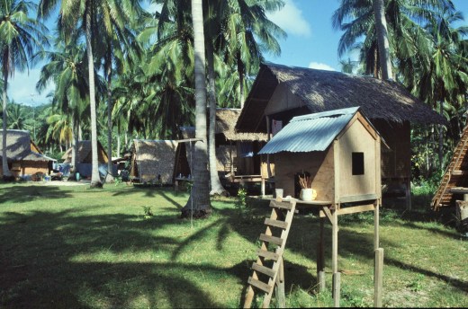 The use of larger timbers was only confined to the main supporting structures of buildings. Sago leaves and leaf stocks were used for roofing and wall panels and bamboo was used for flooring and for roof support. The houses themselves lasted for about ten years and usually the main timbers were then reused for the next construction project to reduce labour.