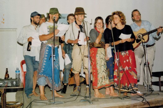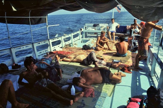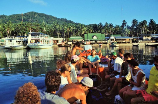 The ship was fairly new and so quite comfortable and really it felt like being on a cruise ship. I remember an interesting and somewhat incompatible assortment of facilities on board including a disco and a mosque, with regular calls to prayer (although the 2 weren’t in direct competition with each other). There were even organised exercise sessions on board to get the Raleigh participants into shape, much to the amusement of the other passengers. The food was interesting too and very flavorsome, as long as you didn’t mind the occasional chicken’s foot or head found floating in the soup. During the voyage we made a couple of impromptu stopovers, for example on the island of Sulawesi, where a flotilla of small boats took people ashore from the Rinjani, as the harbour facilities were unsuitable for such a large vessel to dock.
