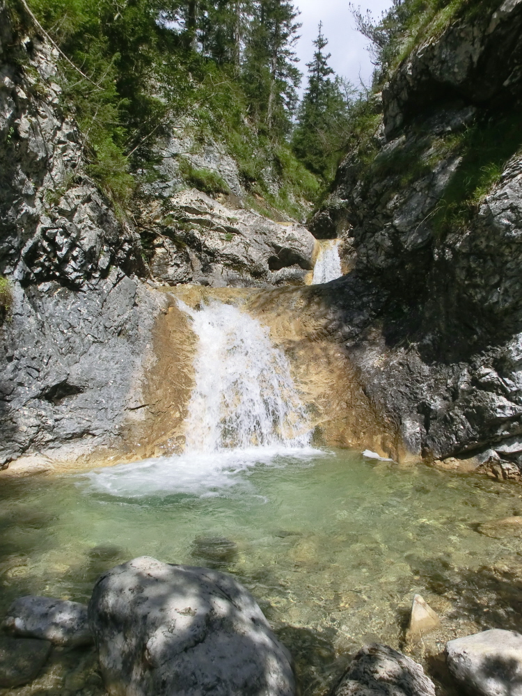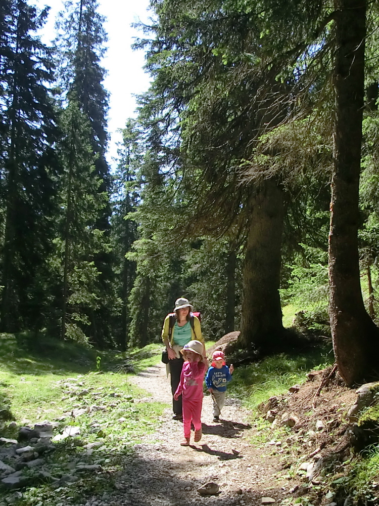 Despite suffering from an embarrassing episode of “housemaids knee” (acquired from carrying our small children around rather too often), I was determined to walk to the nearby Obersee and defiantly limped off along the path in that general direction. To a musical accompaniment of a babbling stream, ghostly silhouettes of birches and spruce trees formed through the cloud, the first hint of sunlight illuminating dew bedecked spiders webs. I blundered on, increasingly focusing on the magical landscape unfolding around me in preference to inconvenient personal injuries; it’s really quite amazing how pain and irritation fade away when we change our focus away from ourselves to the world around us.