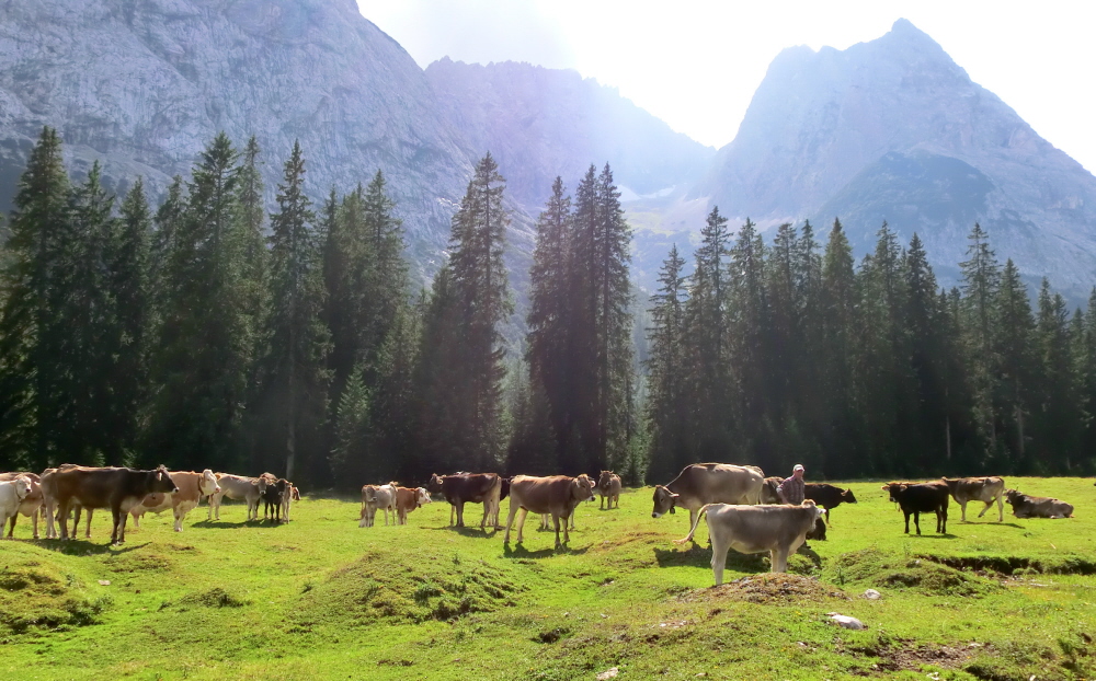 The alpine meadows (or alms) of the region are truly spectacular; to the sound of tinkling bells, lazy, contented cows graze nonchalantly amongst a blaze of colourful wild flowers including spotted orchids, bell flowers, alpine asters and edelweiss. Near to the Zwölferhorn itself, there are a couple of chilled-out mountain huts serving local specialities and a welcoming glass of beer or radler.